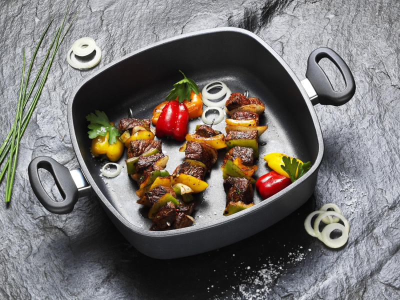 KVALITA-V-KUCHYNI » Titanové pánve a hrnce » Nádobí na indukci » Indukční hranatá pánev SKK 28x28/8 cm včetně poklice